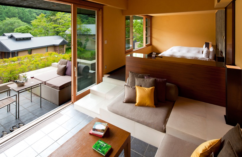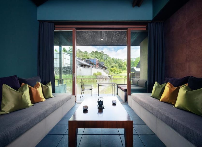 The programme unfolds across two or three days and draws on the specific character of the location: horseback riding in the forests of Mount Asama, nature walks in the Wild Bird Sanctuary, meditation bathing in the private onsen, shiatsu and acupuncture in the spa. No TV in the rooms. No agenda beyond being present in the landscape. The ryokan concept, Japanese inn hospitality, is here expressed at a scale and with a level of design that makes it feel less like a hotel and more like a private estate.