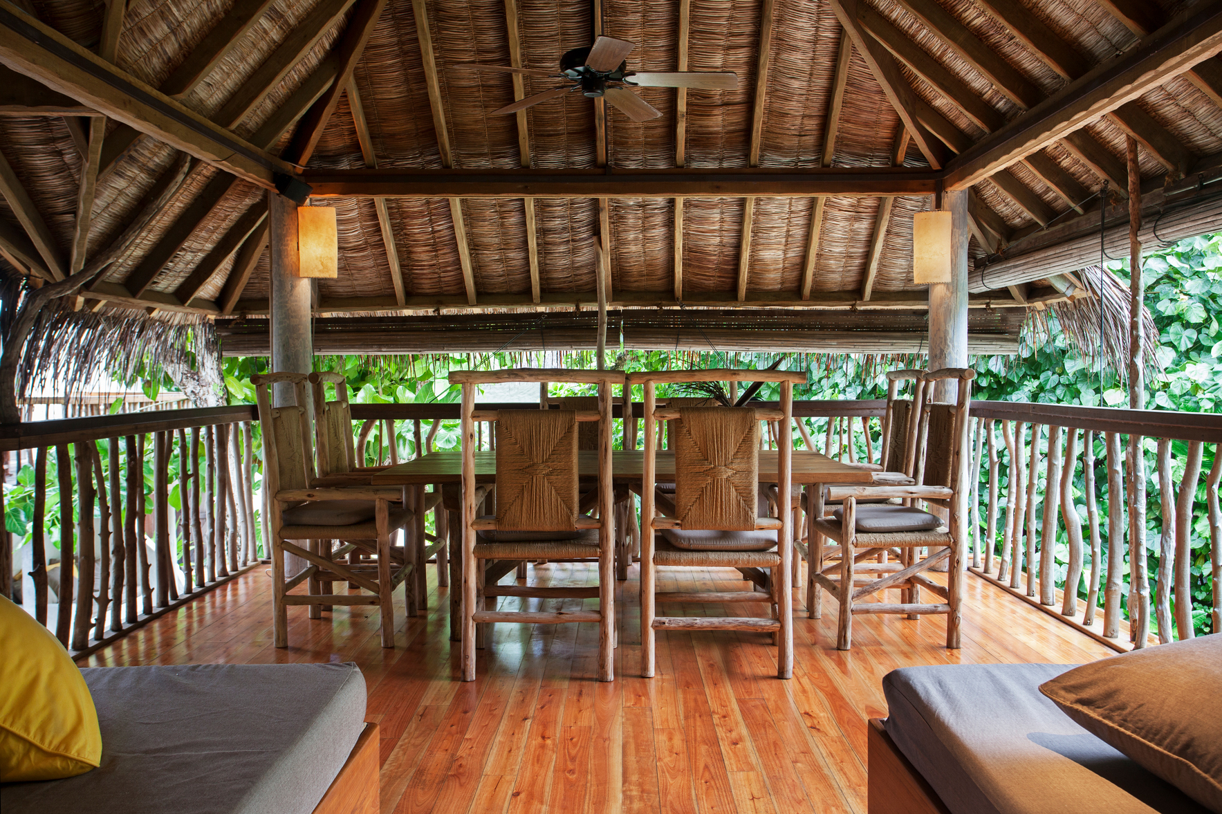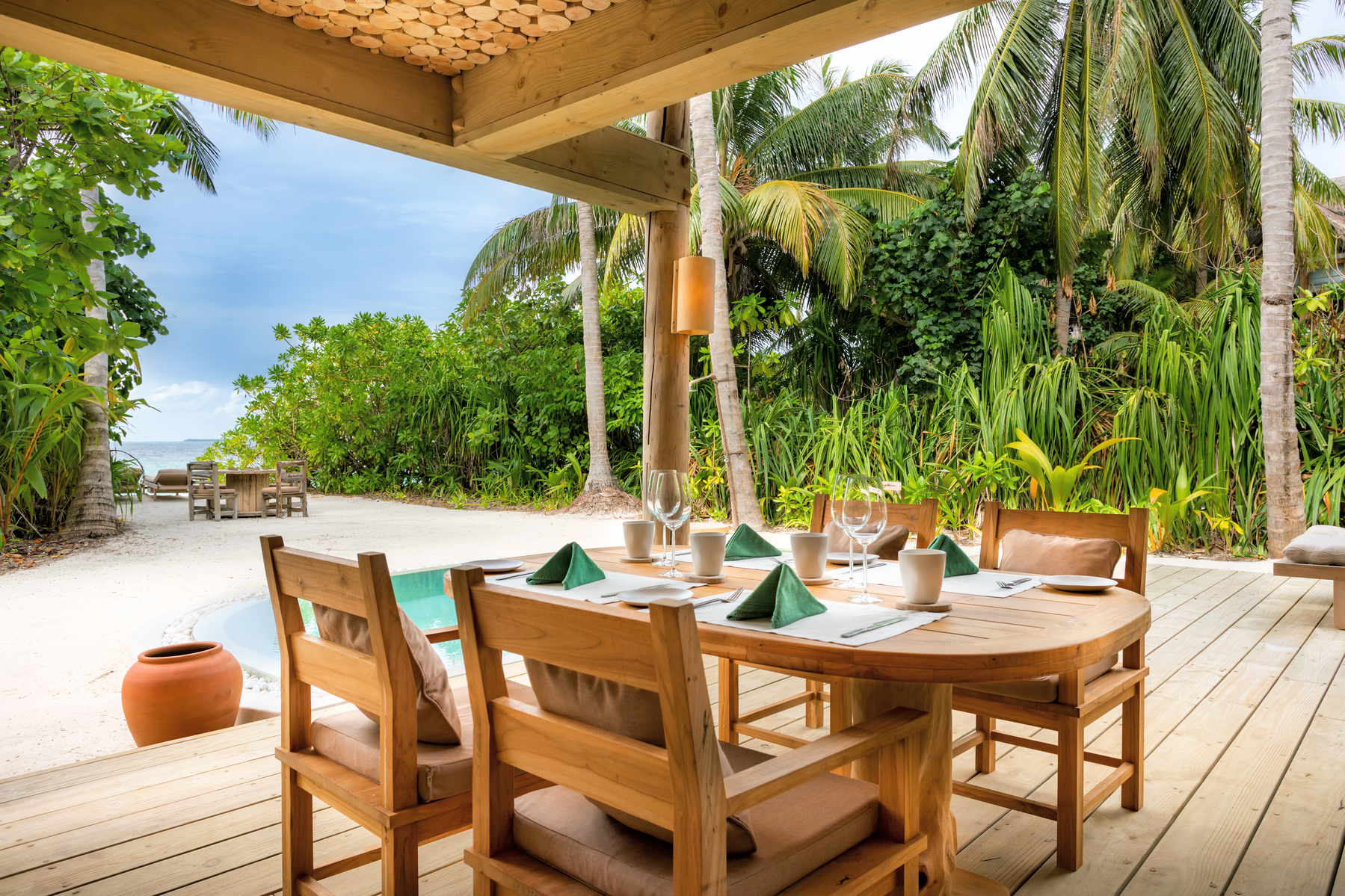 The sixty-four private villas are scattered through dense tropical foliage along the beach, built from natural materials and designed to dissolve into the vegetation rather than sit above it. Bicycles are the main form of transport. Butlers are called Mr. or Ms. Friday. The pace is set by tide and light, not by a programme coordinator.