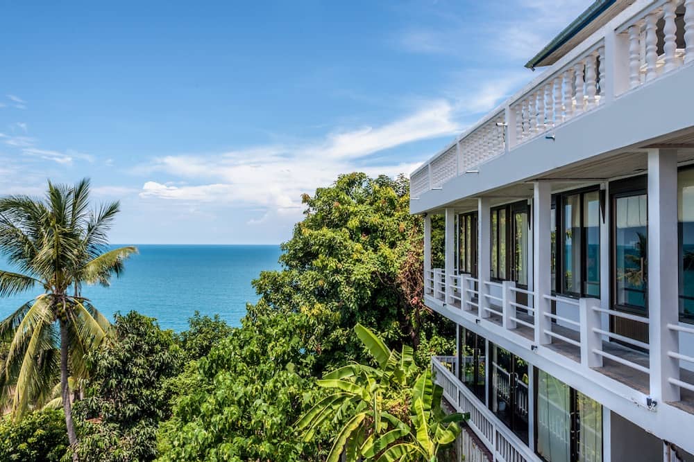 The campus holds 50 rooms across several categories, from compact Yoga Caves designed for solo travellers to ocean-view Lotus Pads with private terraces. Meals are primarily plant-based, the on-site café is open to the public, and the spa runs treatments seven days a week. The retreat also hosts a global community of yoga teachers, which means the programming evolves week to week and the quality of instruction is consistently high.